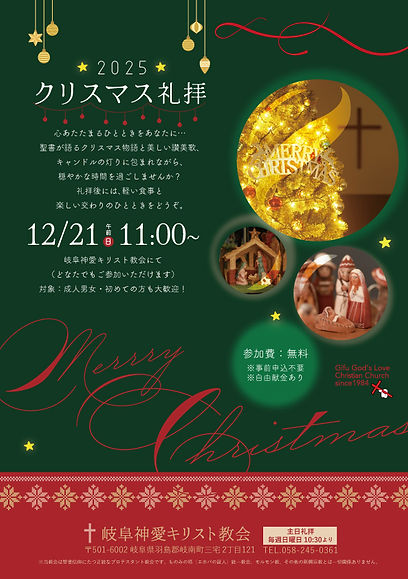 場 所:岐阜神愛キリスト教会(どなたでもご参加いただけます)